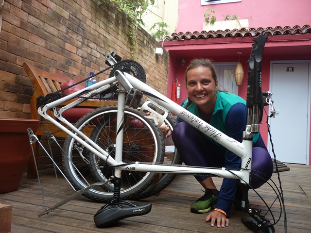 Foi neste ponto da história que surgiu a Flecha – Venturosa – com o “sobrenome” em homenagem a anterior. Ela entrou em minha vida em grande estilo: ganhando mala-bike e andando de avião, gastando seus pneus na Cidade Maravilhosa e também na maravilhosa Punta del Este, que anos antes tinha testemunhado meu noivado. Já desbravamos juntas muitos horizontes. Ela me desafia, mas me ajuda a comprovar que sou capaz de superar os obstáculos com perseverança. Ela me estimula a cultivar a saúde e bons hábitos, a vencer o comodismo, a querer saber sempre mais… ela me aceita como sou, carrega minhas coisas, me leva para casa, me faz sorrir… ela faz bem para a pele! E é no mínimo isso que eu quero de um marido.