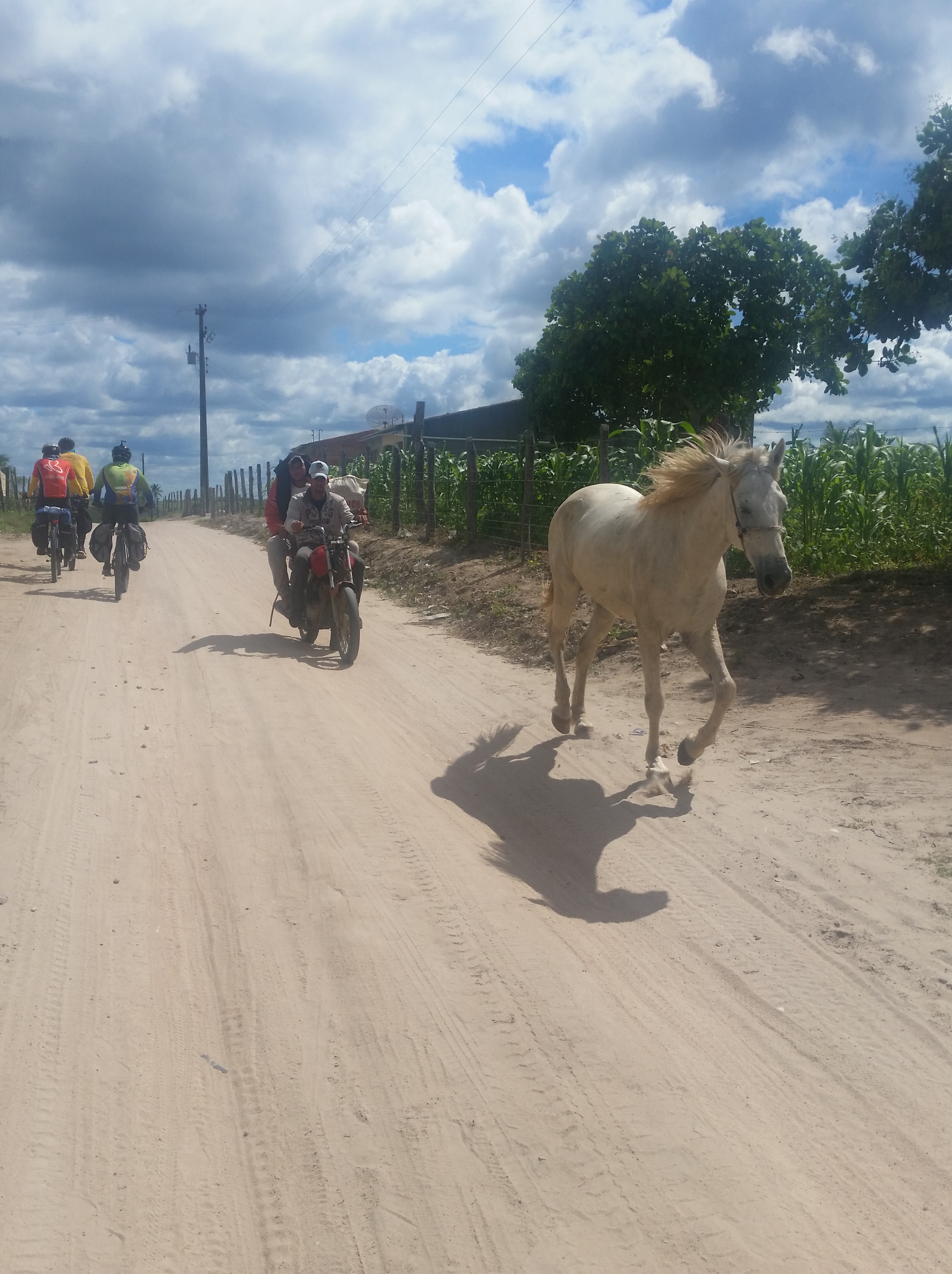 Nos muitos quilômetros seguintes de ladeiras, sertão e horizontes fiquei tentando imaginar como seria ter um templo de adoração dos cavalos – um hipódromo – naquela região tão inóspita. Só me vieram bons pensamentos. Pensei na economia movimentando, na paixão multiplicada, nos horizontes ampliados… pensei nos sonhos que poderiam ser semeados no coração de toda gente e lembrei do amigo jóquei filho daquelas terras que atravessou continentes e foi coroado no além mar. Quantas crianças seu exemplo poderia inspirar? E, para coroar as idéias que lancei para o universo, no último dia de pedal, já em carreira solo, em um pit stop nas margens do majestoso São Francisco, encontrei audiência para falar do esporte dos reis. “Então é esse tal de turfe?” Me perguntou o Excelência – meu novo amigo filho legítimo de Canindé de São Francisco – que me presenteou com um chaveiro em forma de sela. Logo depois – para minha surpresa, fez outra pergunta: “Na Gávea, não é?”. Claro que seria demais imaginar que ele conhecesse o “meu” hipódromo… mas saber o nome de um, foi o máximo! Foi como mais um sinal para que eu siga sendo chata e me dedicando apenas aquilo que eu acredito. Pronto! Já imaginei uma grande tela ali em Canindé mesmo, ao lado de Lampião e Maria Bonita, mostrando as corridas de cavalo – esse tal de turfe – e o povo todo chegando: de jegue, de burrico, ou cavalo de duas rodas, como eu!