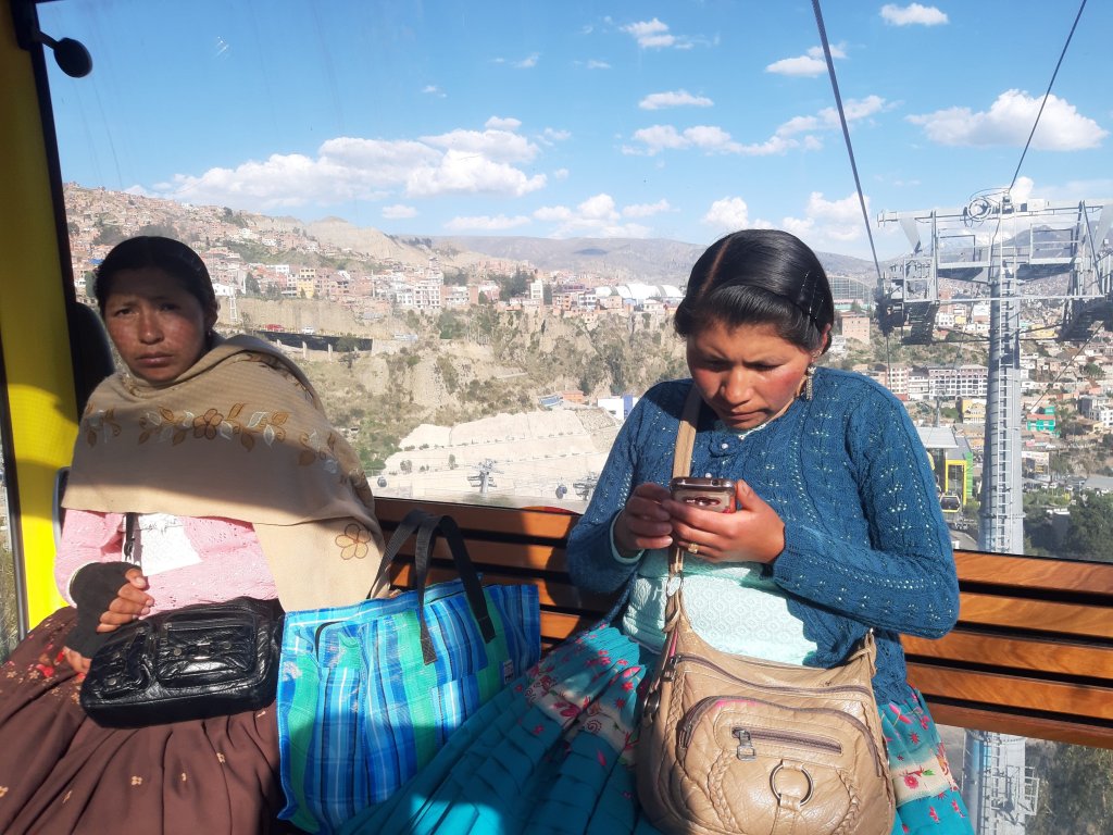A temperatura média aqui – no verão! – é de 9°C. O relevo é surpreendentemente dramático: sobe e desde sem moderação. O sol queima a pele. Nem por isso vi gente escondida ou reclamando da vida. Vi mulheres – muitas! – equilibrando um chapéu “côco” e levando em seu awayo o filho mais novo, vi elas fazendo artesanato e ainda assim sempre atentas no rebanho, pastoreando ovelhas, lhamas e até vacas. Vi elas capinando as plantações de domingo a domingo. Nas cidades, vi casas equilibradas no relevo e sem acabamento – dizem que é para pagar menos impostos – e um emaranhado de fios que é melhor nem pensar como não entram em curto circuito.